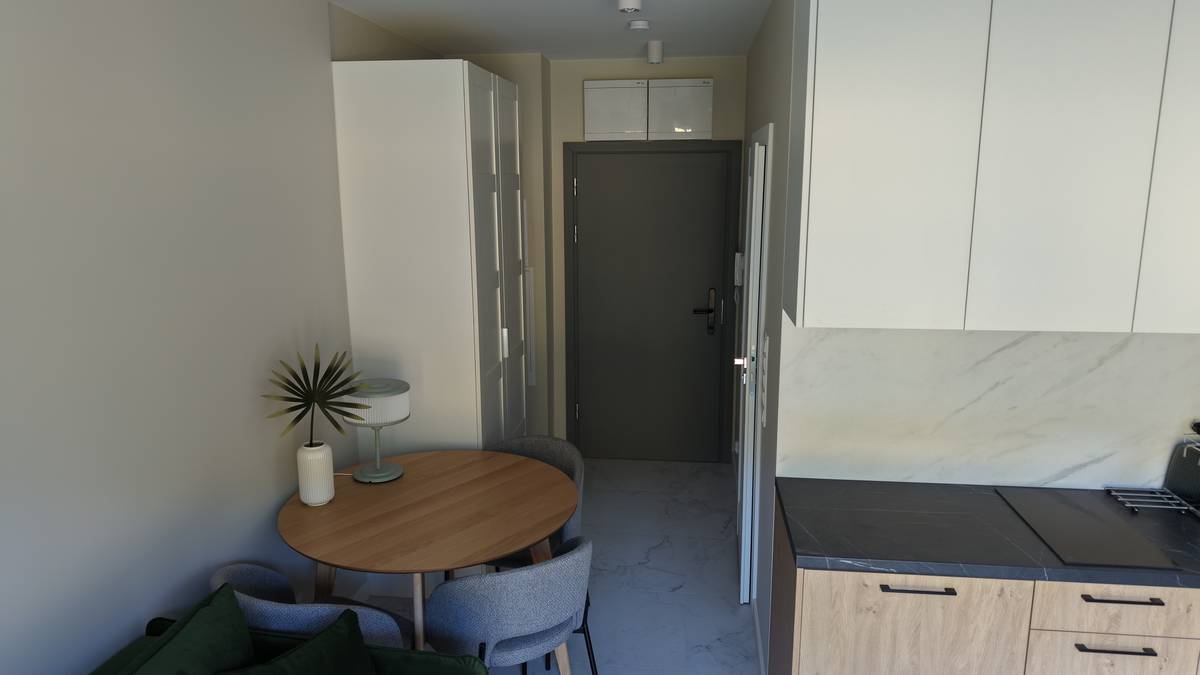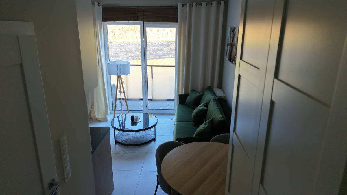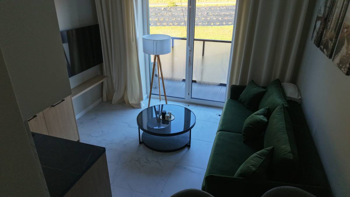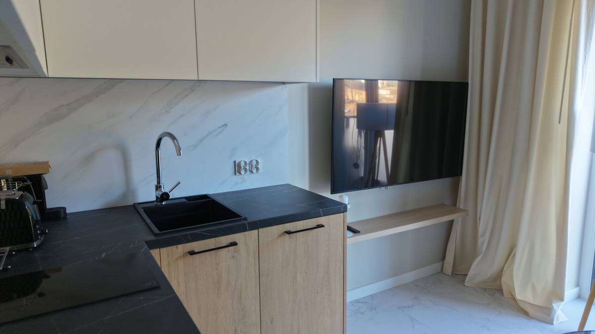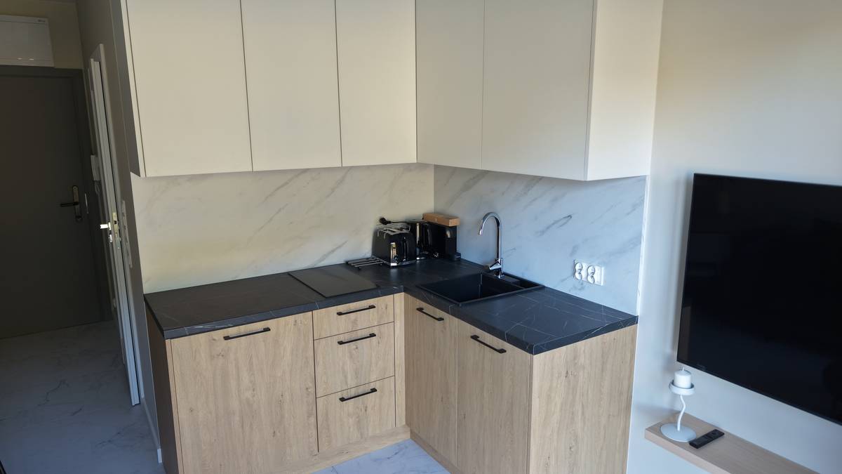 • salon z aneksem kuchennym – jasna, otwarta przestrzeń zaprojektowana tak, aby zapewnić wygodę podczas pobytu,